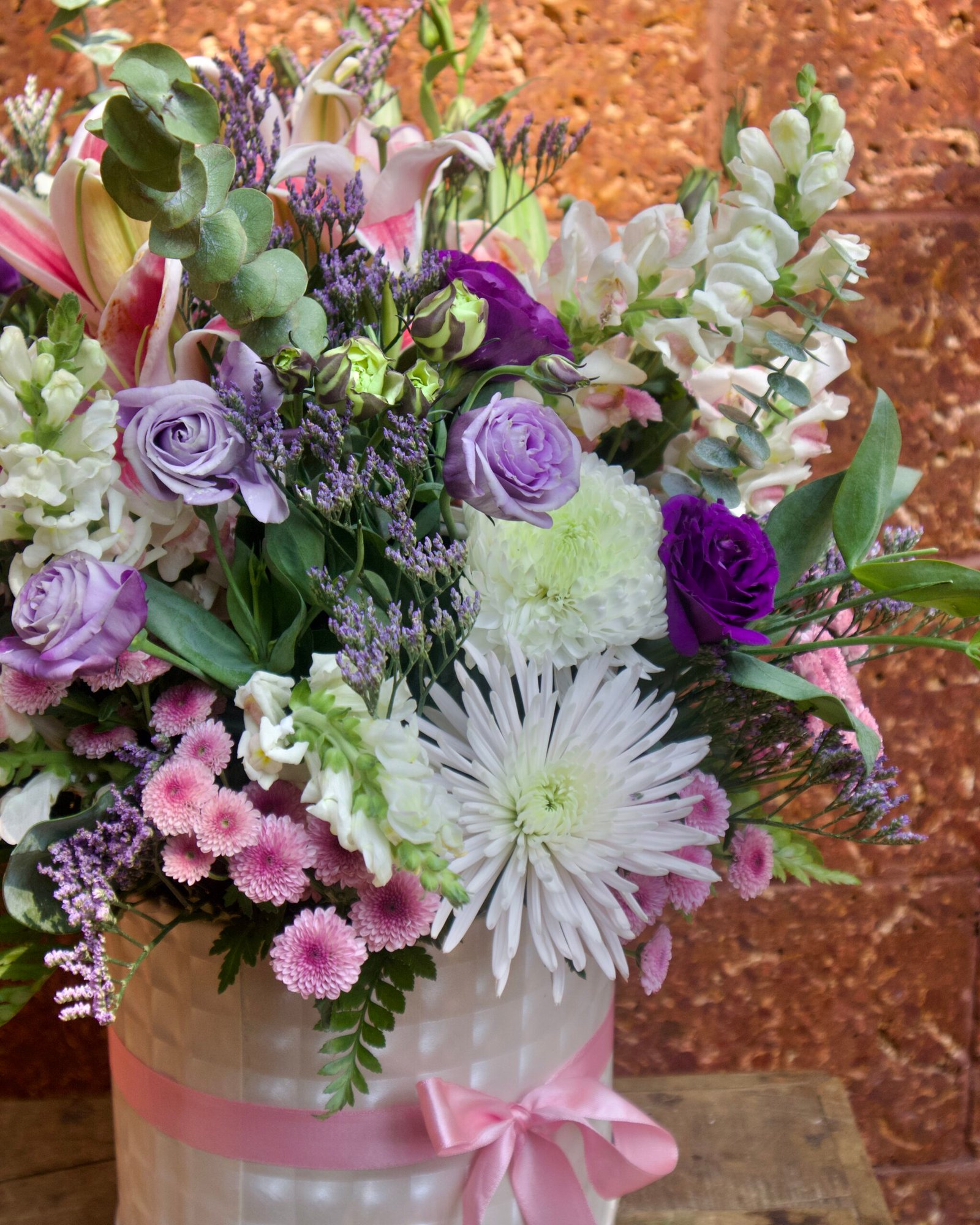 An airy composition of pastel blooms and foliage, crafted for subtle elegance.